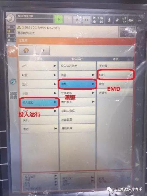 step 4:點擊示教器主菜單鍵,選擇投入運行-調整-EMD-標準-執(zhí)行零點標定;
