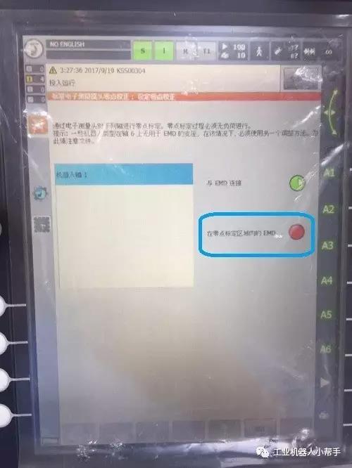 step 1:T1模式,無選擇程序,程序啟動鍵正常,機器人各軸到達零點附近位置;